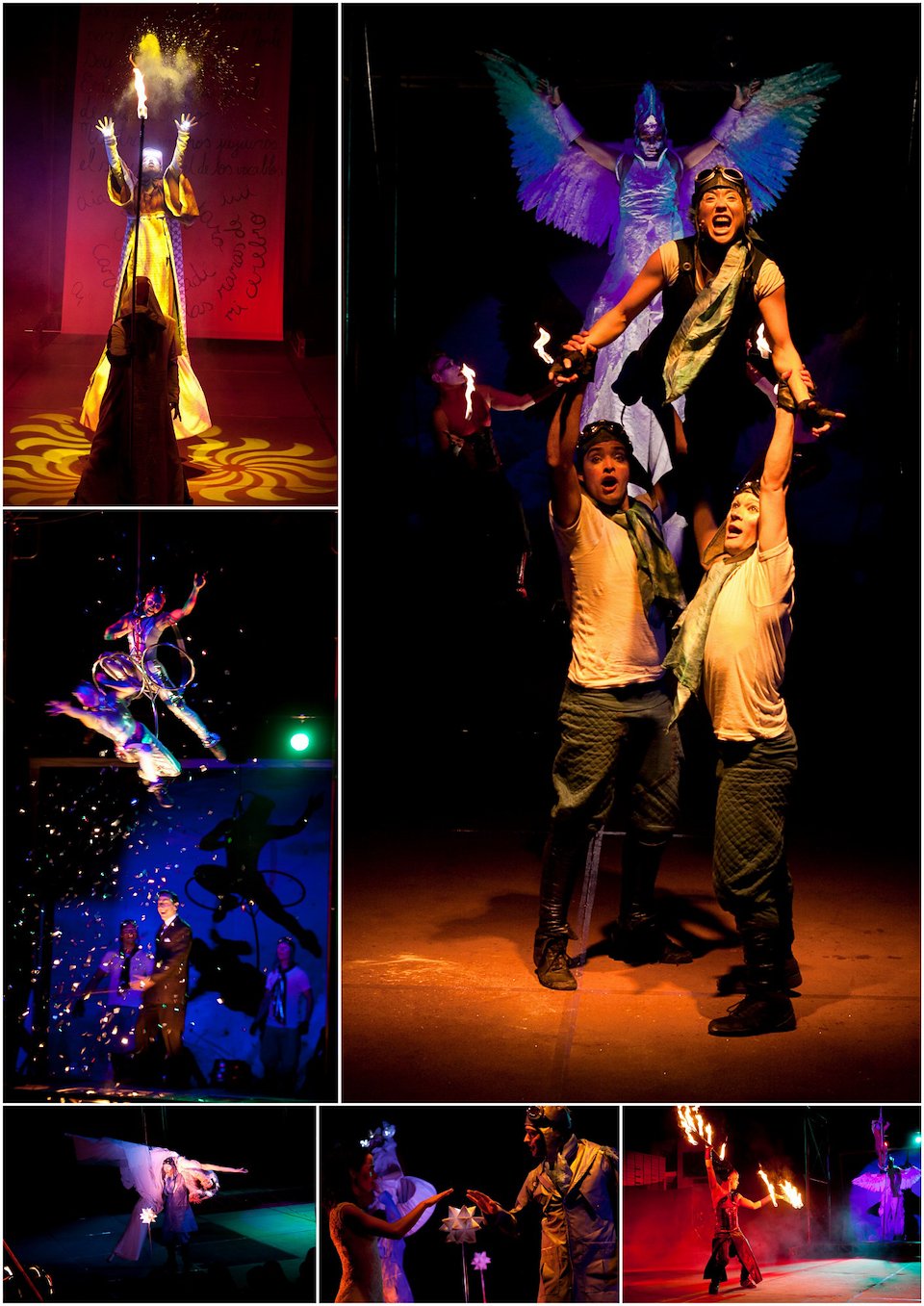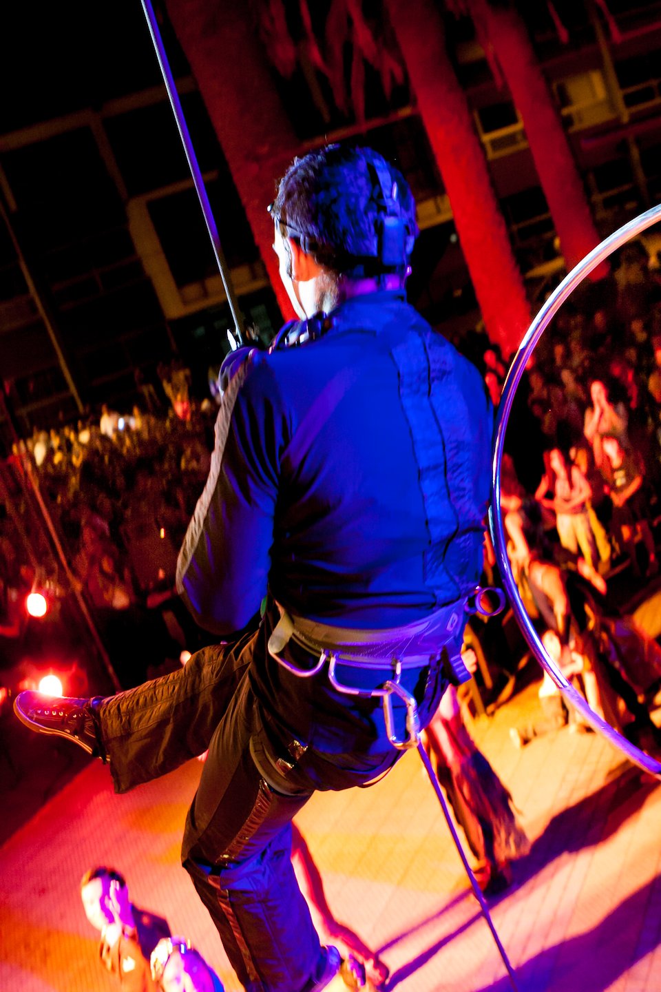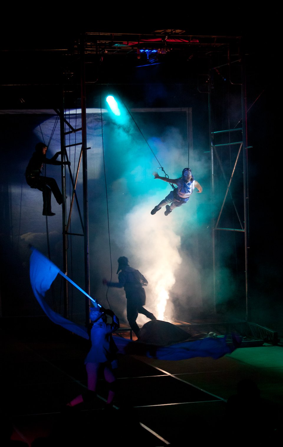 The show, built upon a mixture of several theatre techniques , becomes a great scenic poem able to impact massive audiences (2000 – 3000 spectators)
