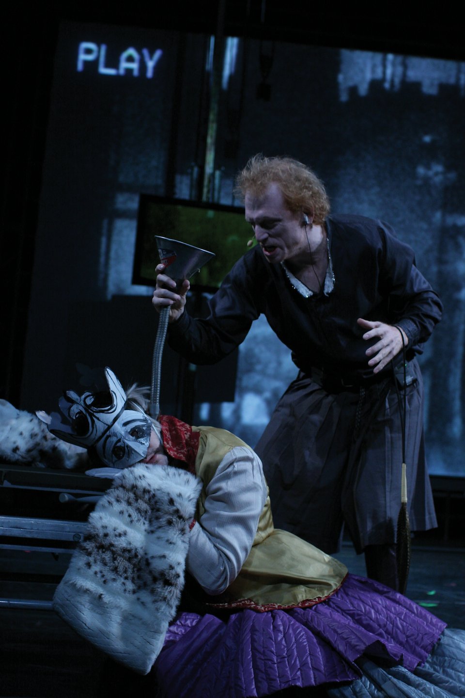 production starring Richard Burton and directed by John Gielgud. In an attempt to adapt to a new era (film was supplanting theater as a dominant art form in the U.S.), the Burton production was recorded in live performance and shown for only two days in 2000 movie houses across the U.S. It was advertised as a new form called “Theatrofilm” made possible through “the miracle of Electronovision”. In the Group’s HAMLET we attempt to reverse this process, reconstructing a hypothetical theater piece from the fragmentary evidence of the edited film. We “cover” the film, intentionally channeling the ghost of that legendary performance.