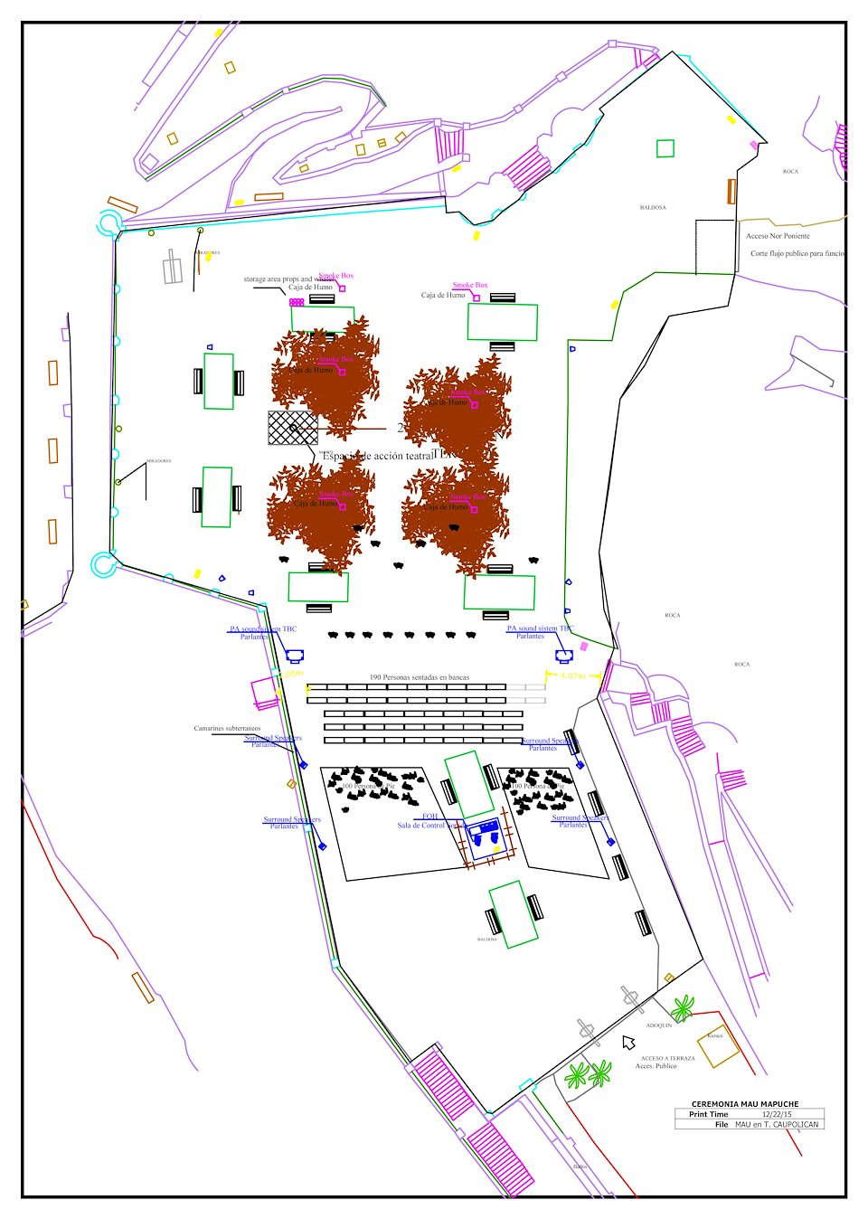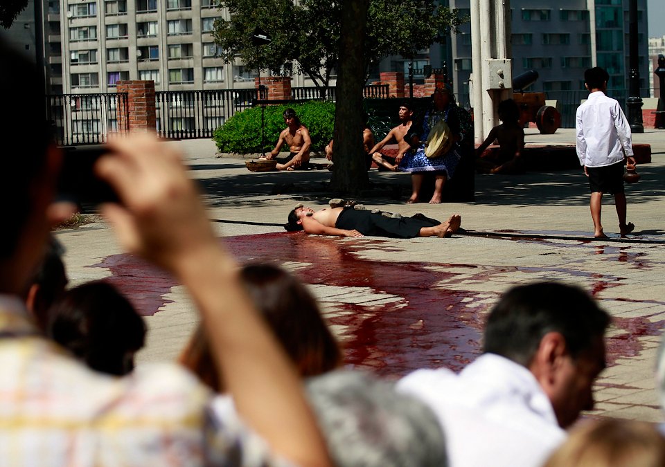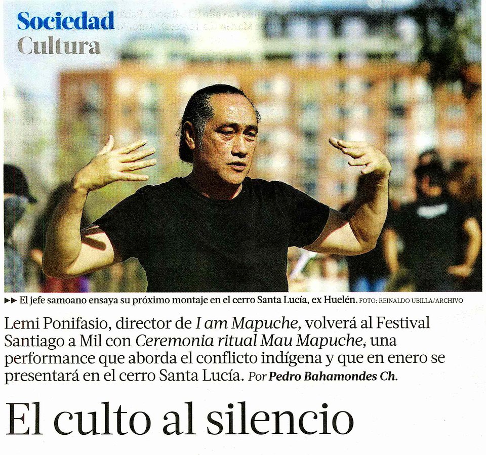 MAU Mapuche, a ceremony-performance spoken in Mapudungún and Spanish, which includes dance, performance, and which installs in the height of Huelén Hill the problem of the original people, with an emphasis on colonization, dictatorship, exile and discrimination