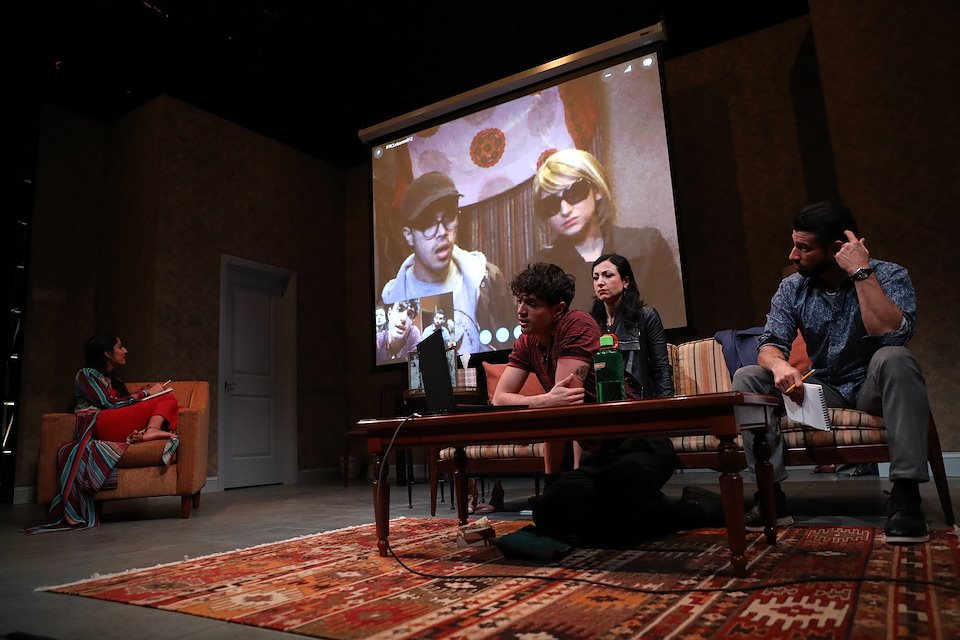 About the show: A standing double date in Damascus quickly escalates into farce as four friends unburden their hearts and reveal their secret passions. But as civil war wages outside, nothing is really what it seems to be. Kiss is a politically charged and emotionally resonant exploration of what gets lost in translation: the unfathomable human toll of a nation in chaos.