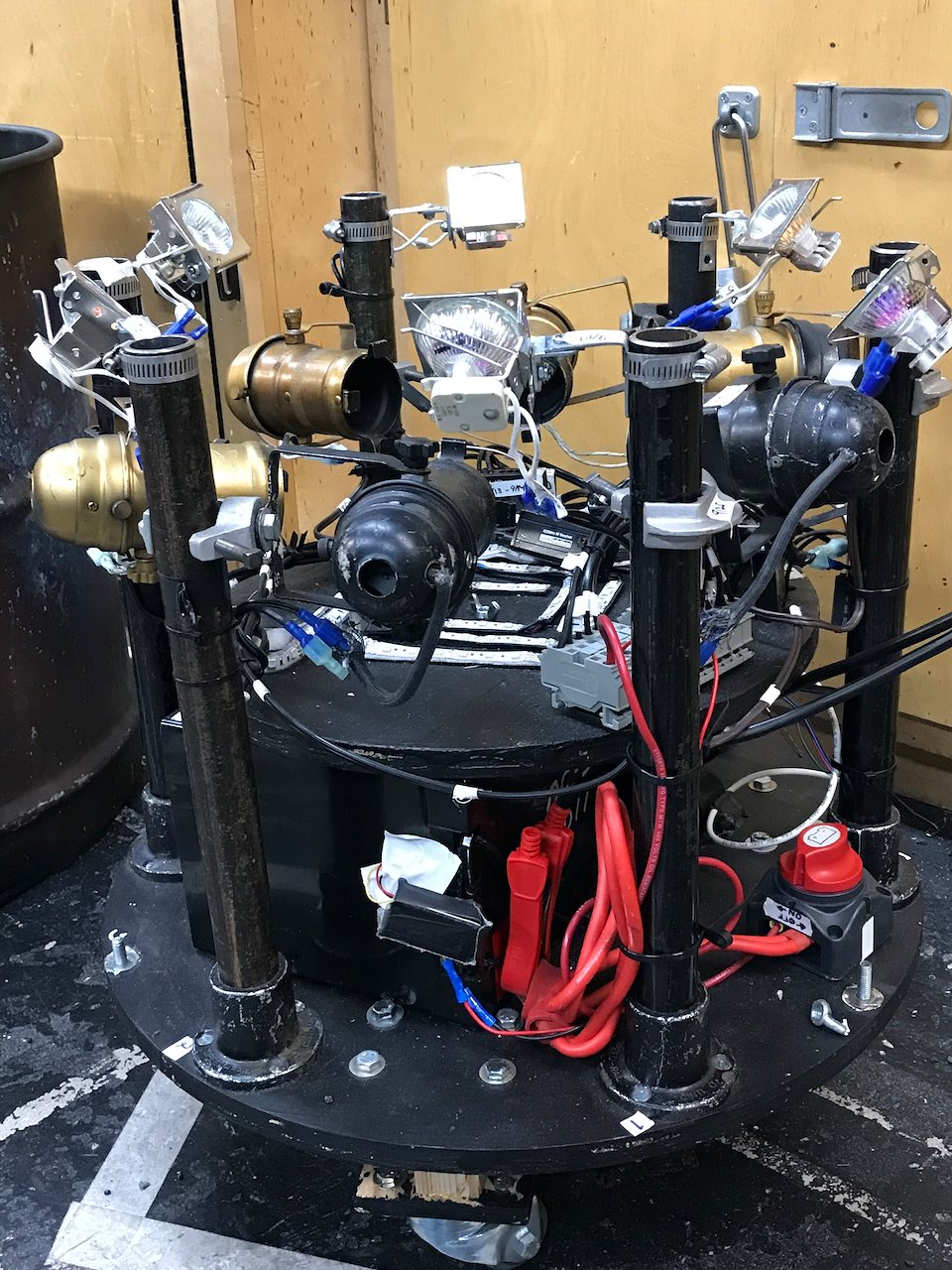 Además del diseño técnico y la construcción de esta utilería, fui responsable de la implementación, instalación y operación de todo el sistema eléctrico. Las tareas más importantes que desempeñé incluyen la elaboración de presupuesto, creación de planos de circuitos y DMX, además de de planificar las tareas y llamados del equipo técnico.