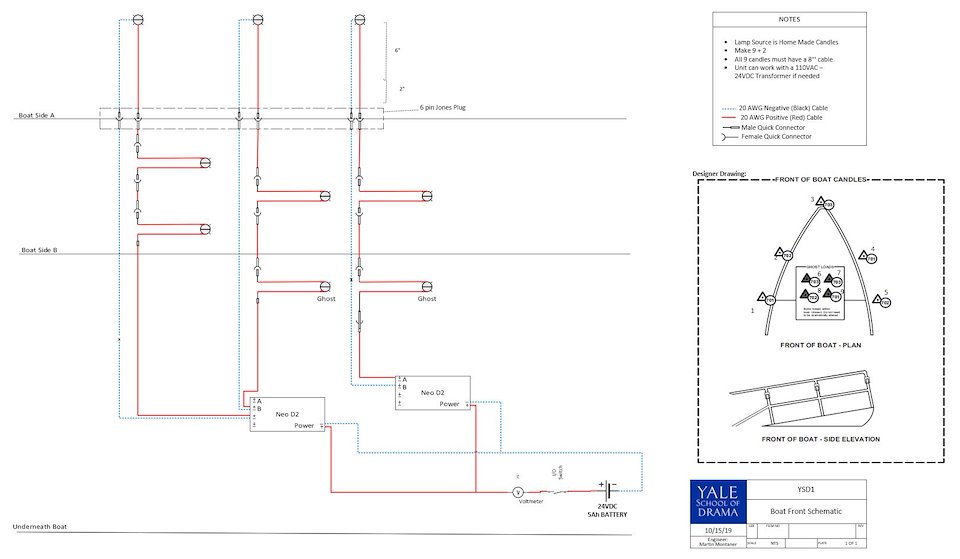 In addition to the technical design and build of these practicals, I was responsible for the implementation, installation, and operation of the entire electric system. The most important tasks I performed as the Master Electrician include budgeting the requirement, create the DMX and circuit plot, and managing the crew and their schedule.