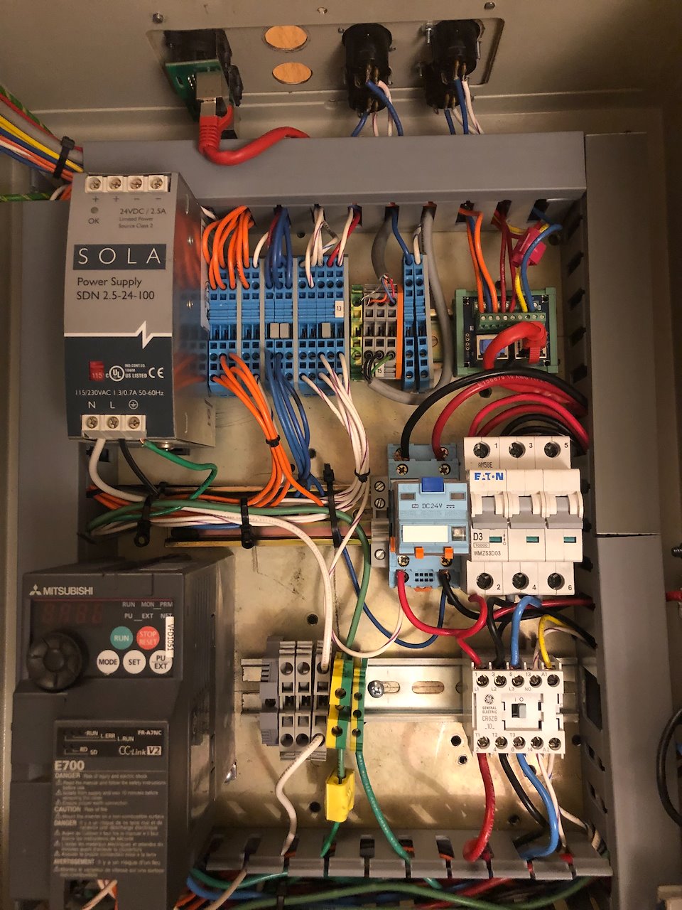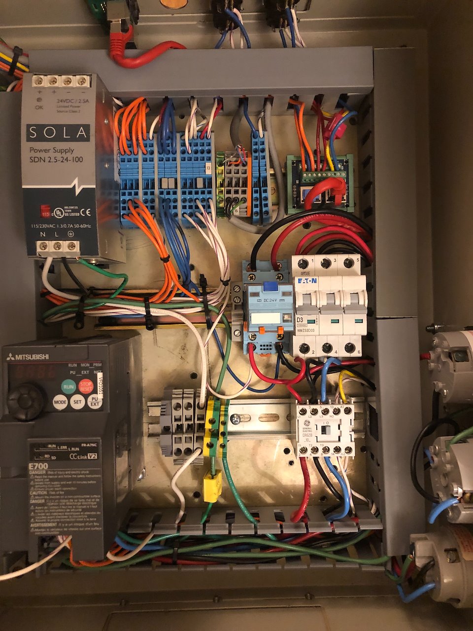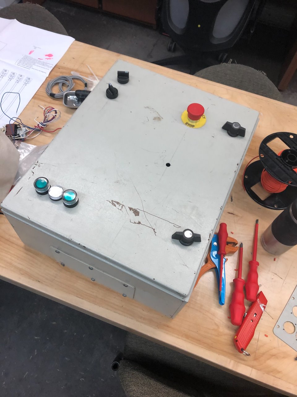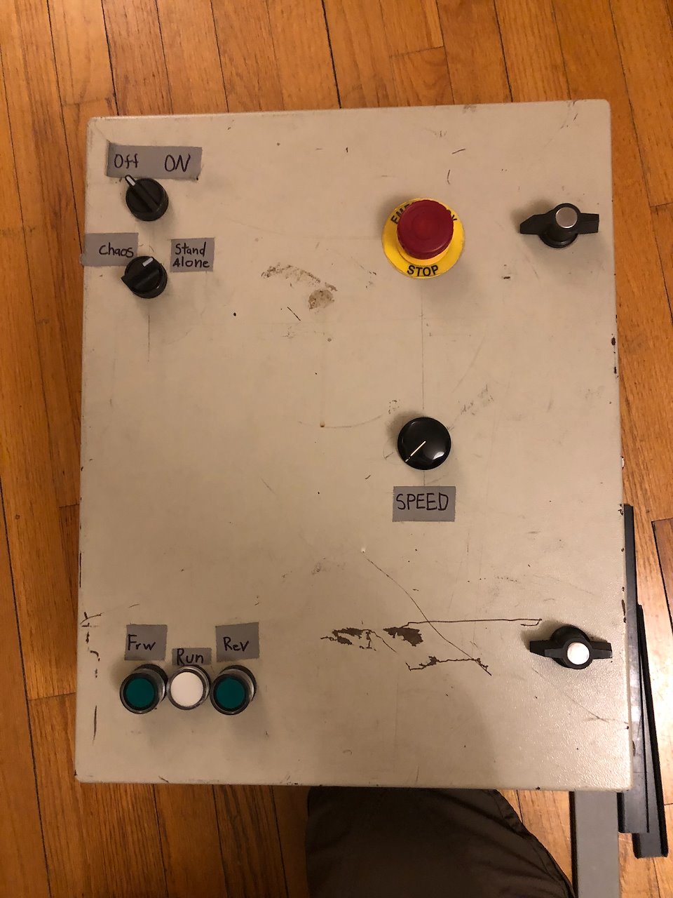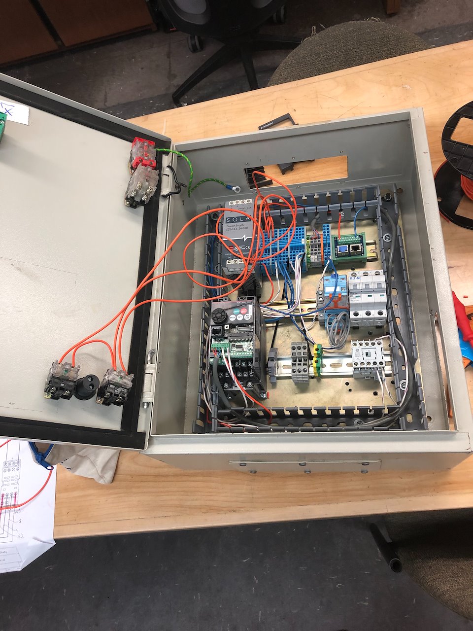 motor controller that Creative Conners, Inc. sells for about $2,500. Compared to the Conners version, the M-Driver does not have a Programmable Logic Controller (PLC) on board. Instead, a series of wired interlocking connections have been added to the design to replace the functionalities of a PLC.
