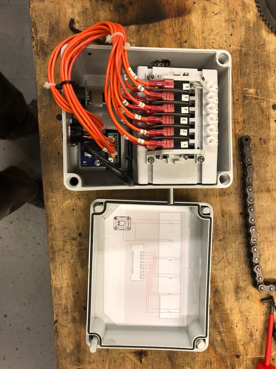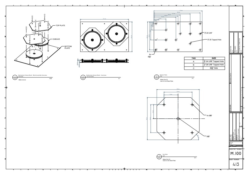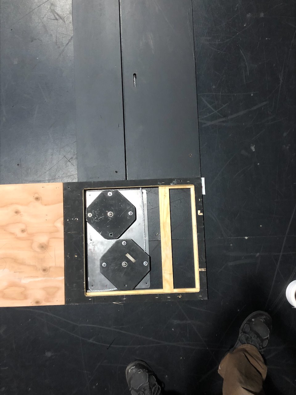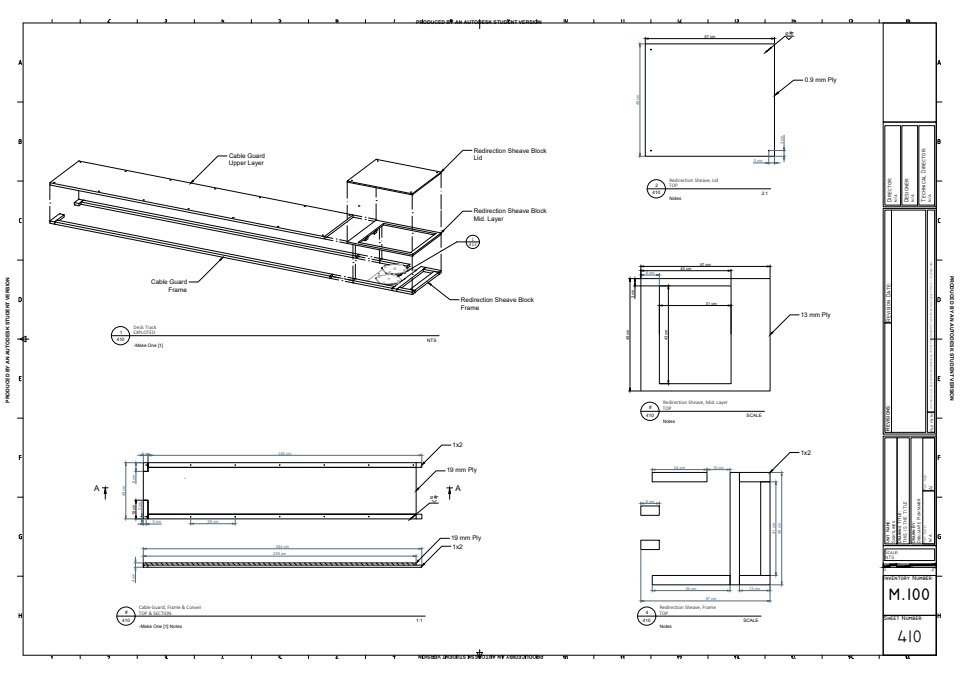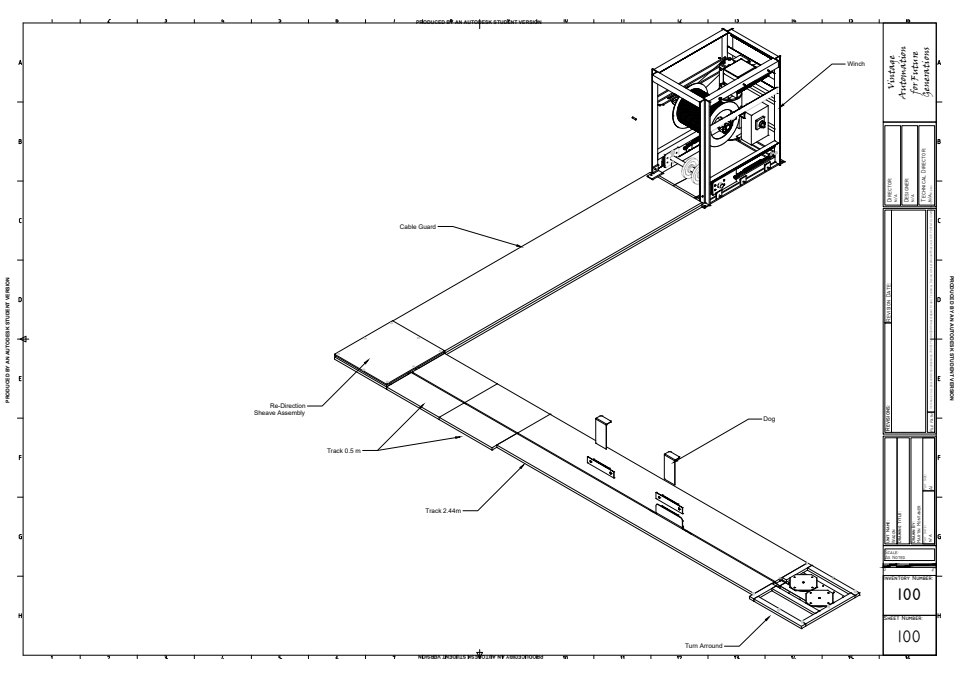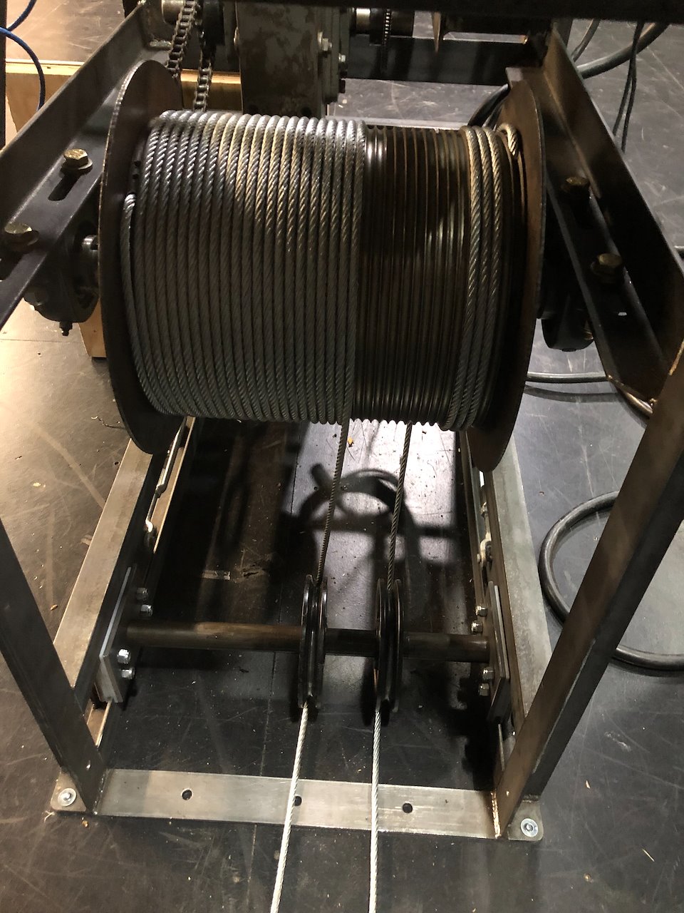 The design of this deck winch is a response to the need for moving a piece of scenery through the stage. Its fabrication needed to be low cost and easy to build. The final product was a simple, robust and reliable 2HP deck winch.