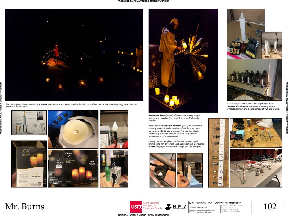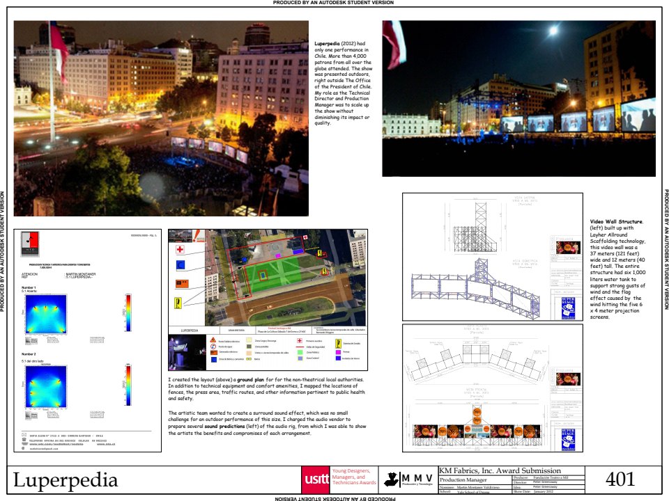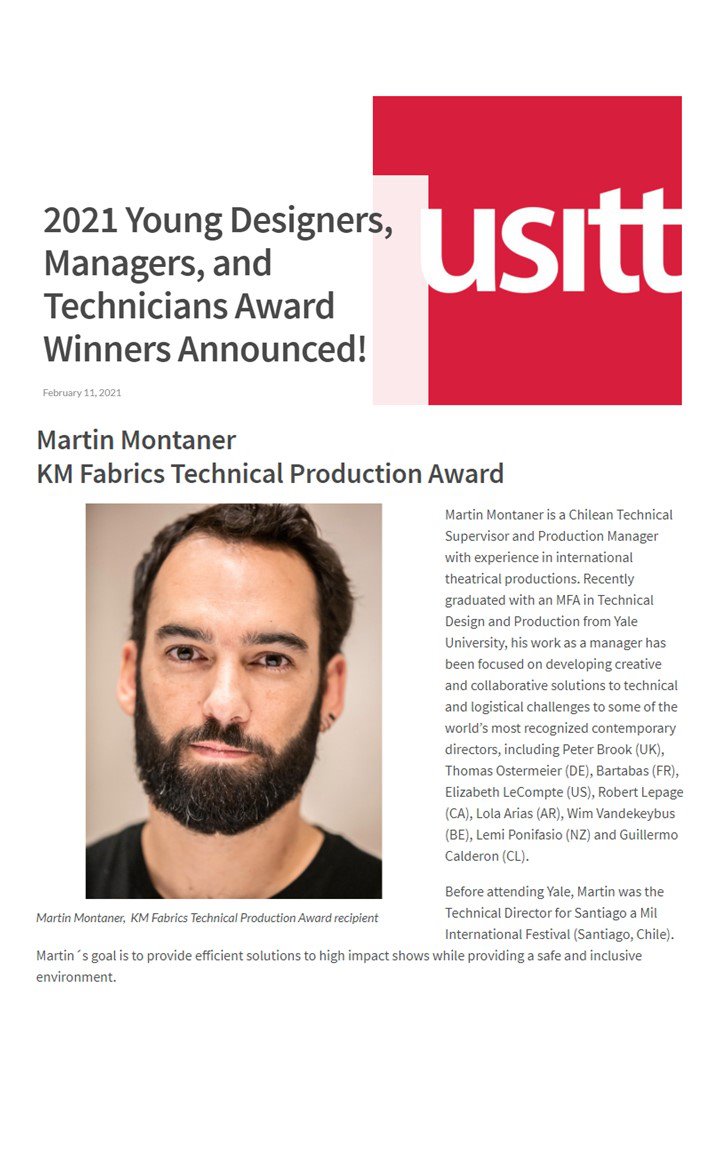 The Awards for Young Designers, Managers, & Technicians in the Performing Arts, known throughout USITT as the YDMT Awards, bring recognition and support to young designers, managers, and technicians at the beginning of their careers. They are made possible by generous gifts to USITT from their sponsors. If you are interested in establishing a permanent award, please contact the USITT National Office.