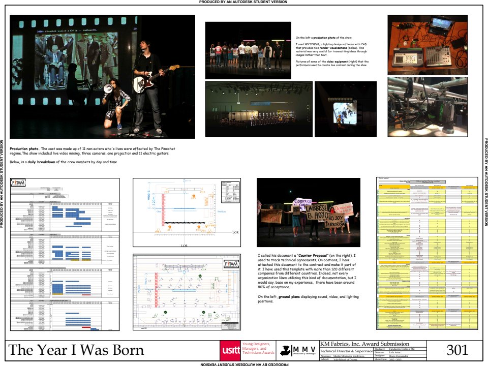Winners of the KM Fabrics, Inc. Technical Production Award display technical competency in a variety of areas. They demonstrate clear execution regarding artistic and technical choices, process, and product.