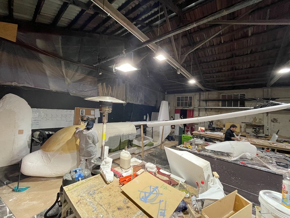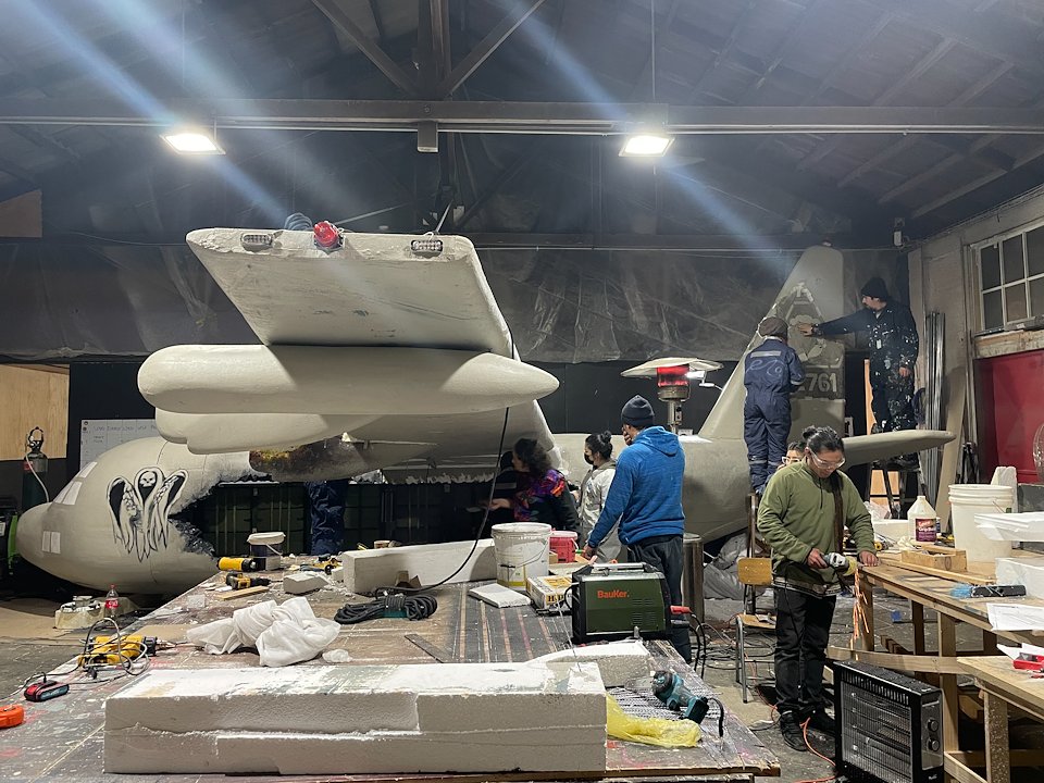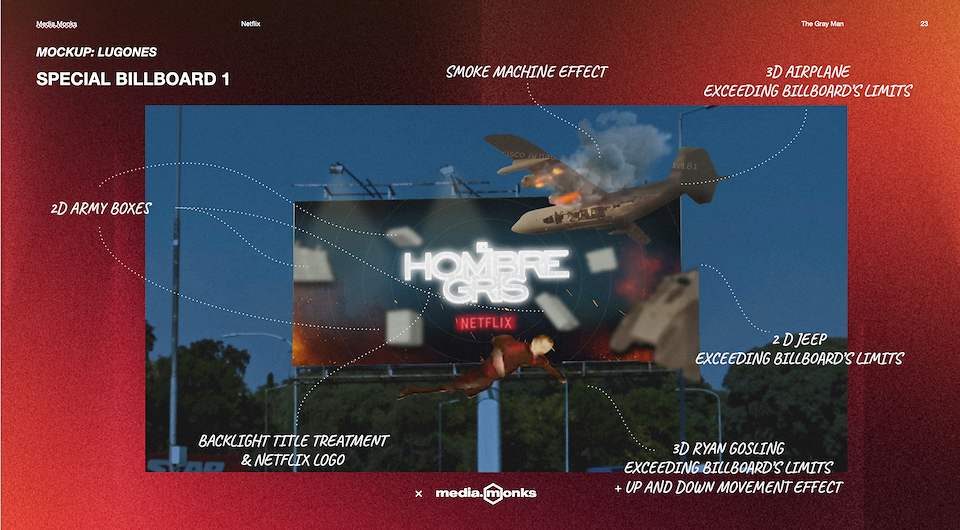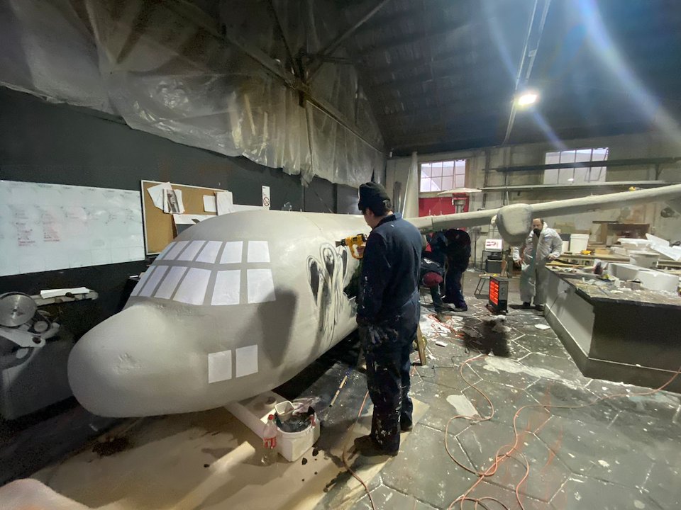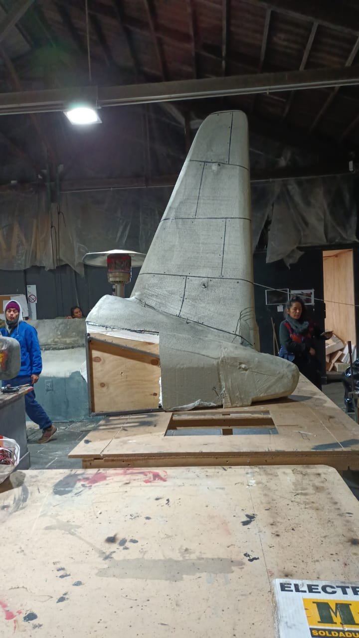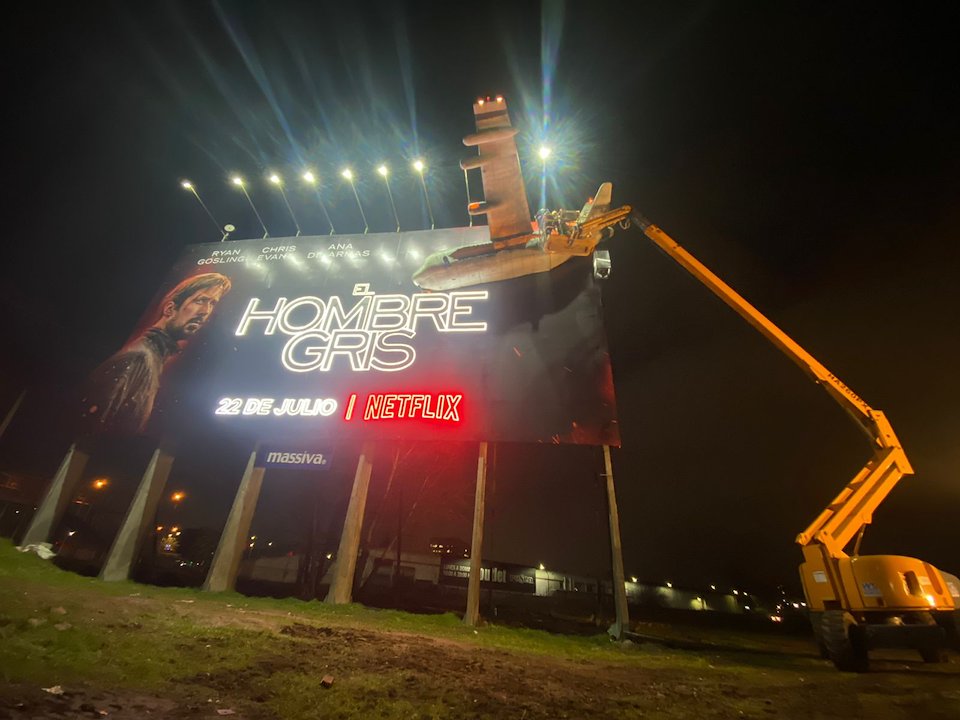 The project involved the technical design, build, and installation of a 7-meter long set piece. The commercial advertising included installing a plane with lights and effects on a Vespucio street marquee.